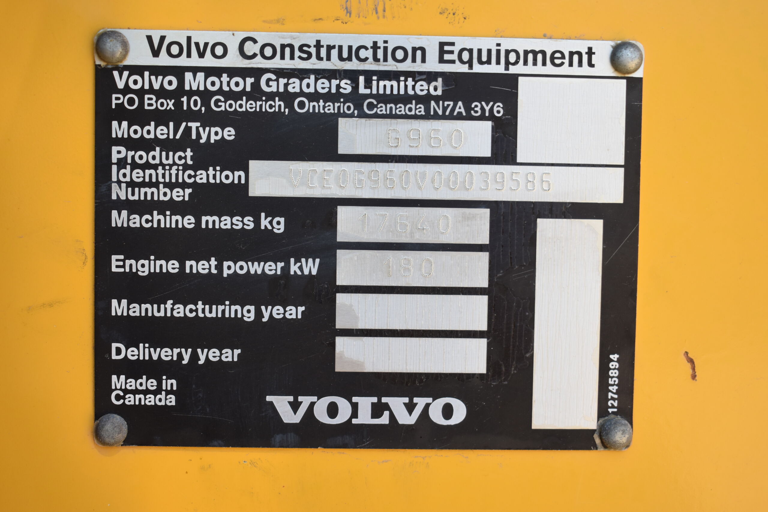 / VOLVO G 960, SN 039586, 2006